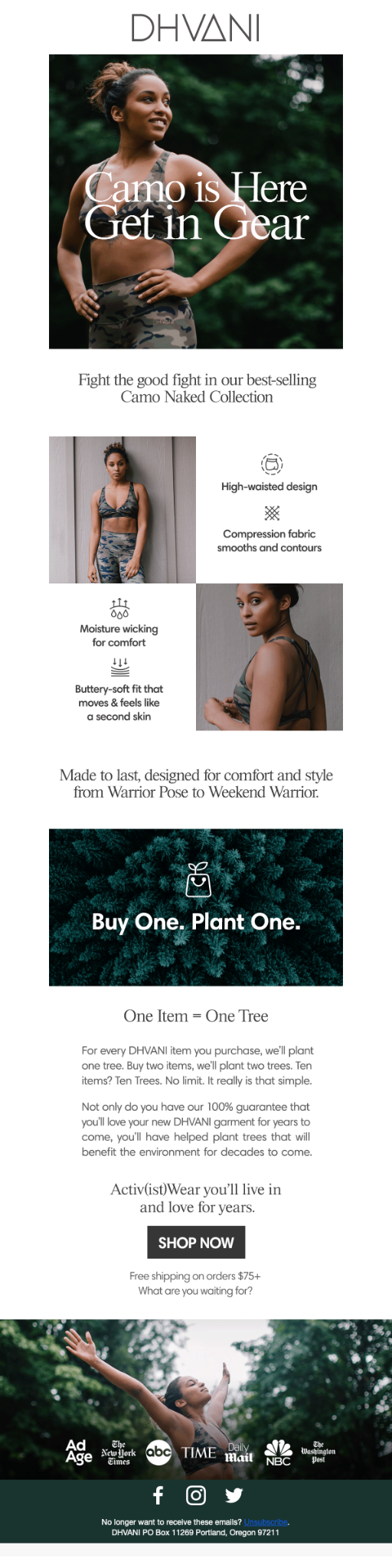 DHVANI • September 23 2021 Newsletter: Camo For Your Inner Warrior One of DHVANI's most popular lines, the Naked Collection, was introduced in the camo colorway.