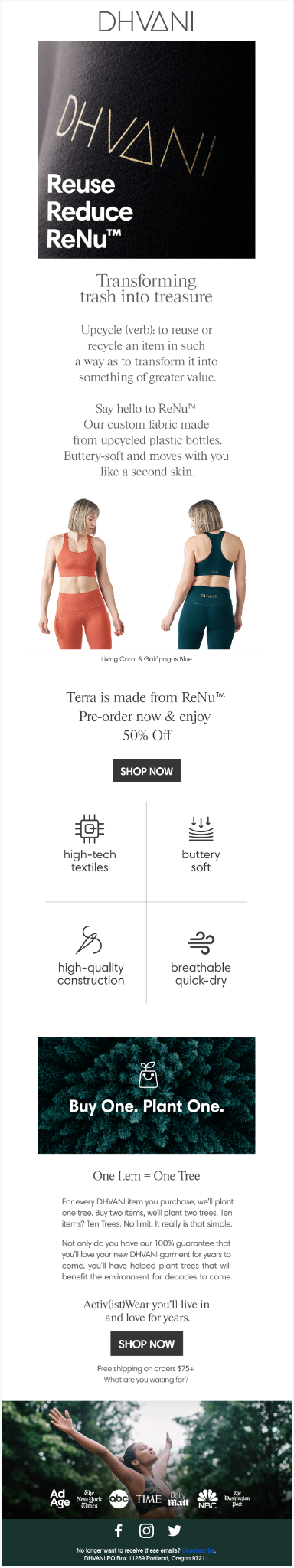 DHVANI • September 23 2021 Newsletter: β»οΈ ReNu - Upcycled Activ(ist)Wear πͺ DHVANI introduces a new performance fabric made from recycled water bottles.