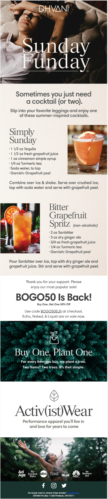 DHVANI • September 23 2021 Newsletter: π Easy Like Sunday MorningπΉ DHVANI encourages its customers to grab their favorite leggings, and get comfy with a cocktail (or mocktail). Recipe included.